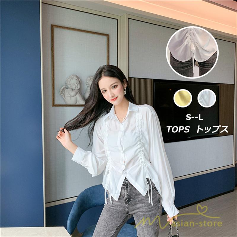 ブラウス Poloネック フロントシャーリング ピンタック デイリーコーデ スタイリッシュ 長袖 リボンデザイン 韓国風 シングルブレスト ゆったり 春 コーデ Yonemw アジアンストア 通販 Yahoo ショッピング